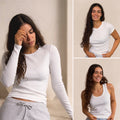 Zeitlos und echte Alleskönner: Das Daily Basics 3er Set besteht aus Tank Top, T-Shirt und Langarmshirt unserer PURA Reihe. Alle drei Produkte werden aus unserem superweichen SoftRib gefertigt. Sanft auf der Haut, elastisch und vielseitig kombinierbar und damit die bequemsten Basics für Schlaf, Zuhause oder Alltag – deine stilvollen Begleiter in jedem Moment.